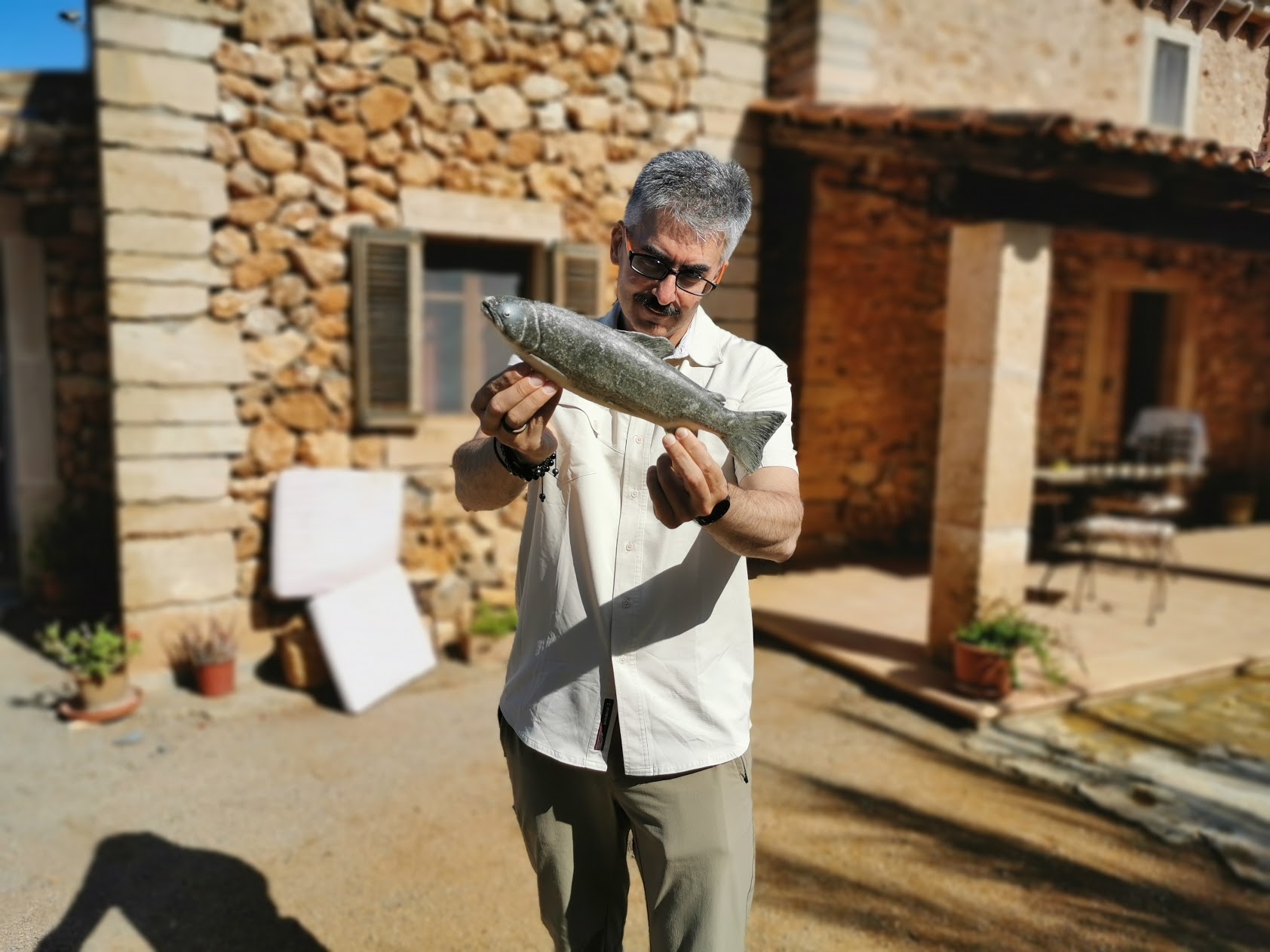 Ну хоть с такой рыбой фото, во дворе первого домика на юге
