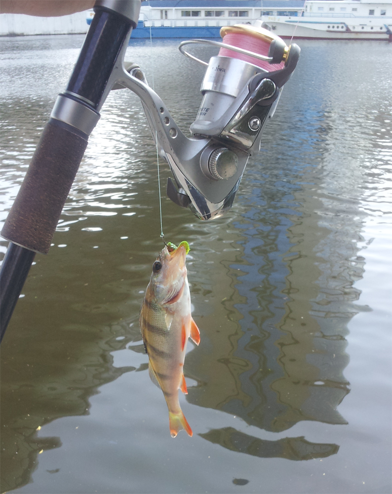 Окунек, пойманный 21 июля в обеденный перерыв а Москве-реке