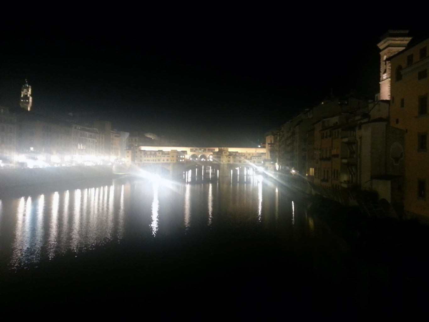 Мост Понте Векьио ночью